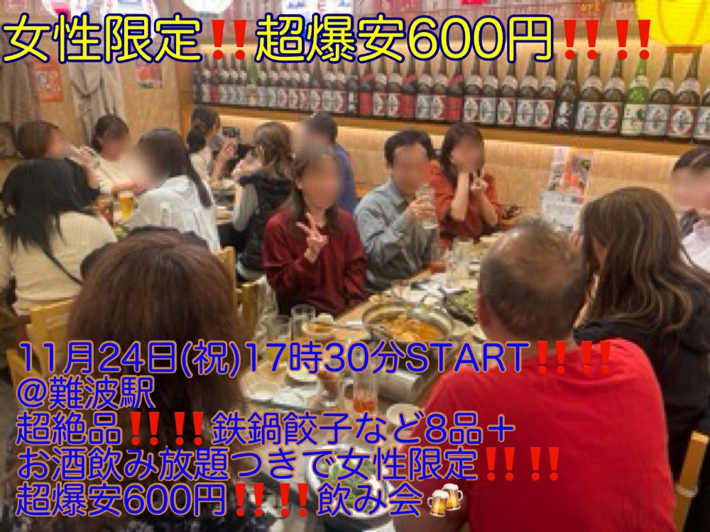 超絶品な鉄鍋餃子、牛すじ旨辛鍋などのコース料理8品+お酒飲み放題+晩秋の超特別プレゼントがついて、女性限定‼️‼️超爆安600円‼️‼️