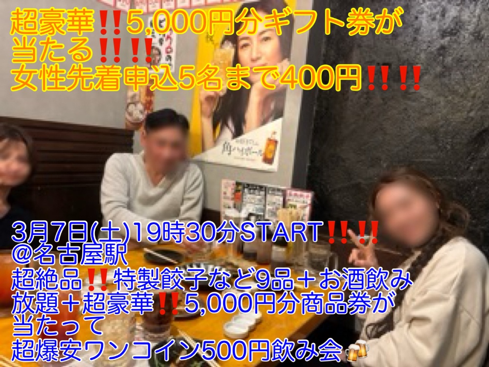 3月度の名古屋地区の飲み会🍻は、年に数回しか開催されない、「超豪華‼️5,000円分のギフト券が当たる‼️」ビンゴ大会を開催いたします‼️‼️イベントの途中で開催されるビンゴ大会で優勝をしますと、超豪華‼️‼️5,000円分のギフト券をプレゼント🎁